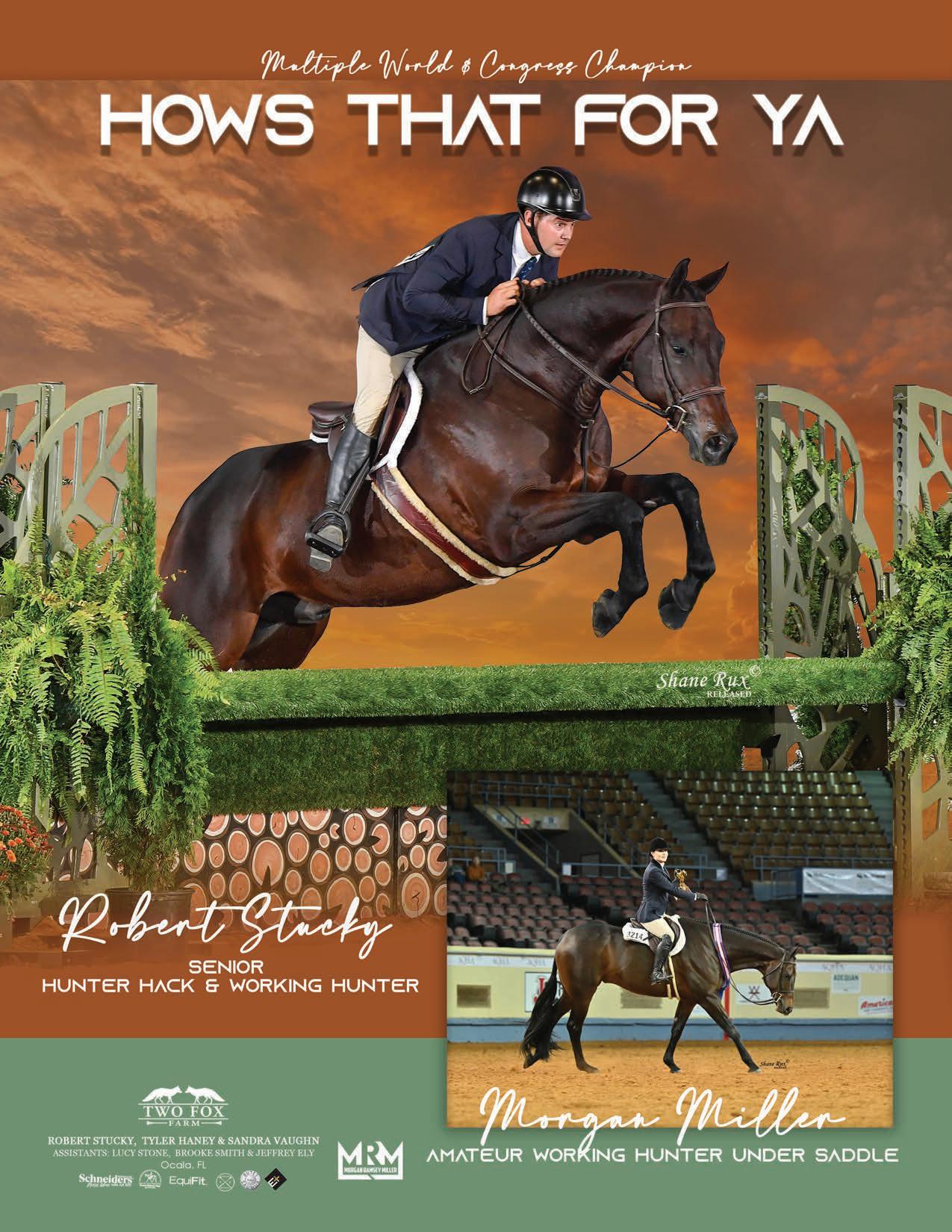 The past few years have tested that strength. In October, on the same day that her husband left for a deployment, Jakovich lost her mother. Just months later, she lost her beloved mare, Helloo Gorgeous, to kidney failure shortly after foaling. That mare held a special place in Jakovich’s heart. Having just sold two of her yearlings before her passing, she had big plans for her future foals. Now, Jakovich looks forward to watching one of the two-year-olds she bred, Helloo Ladies, who Morgan Miller owns, show at the Congress in the maiden hunter under saddle with Beth Case in the irons.