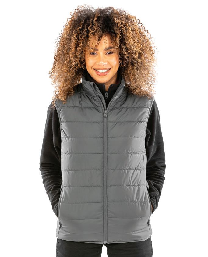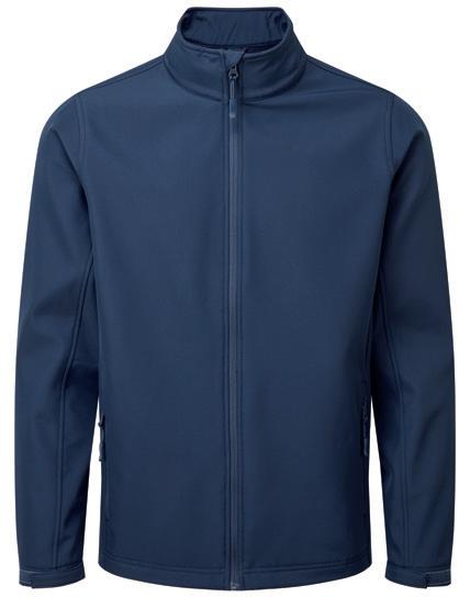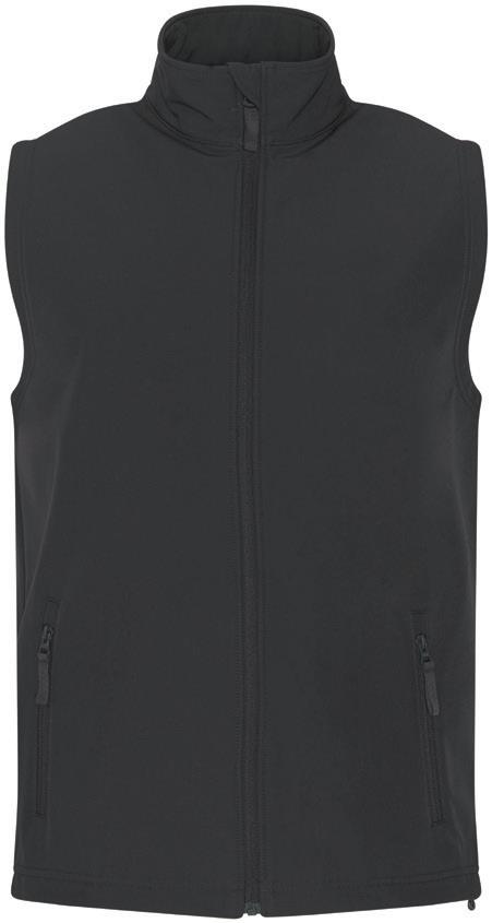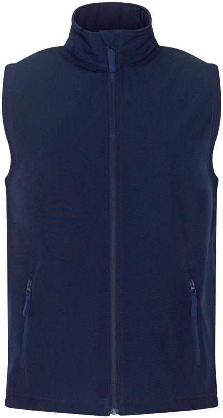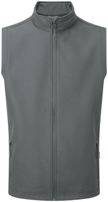 Three layer soft shell. 94% recycled polyester/6% elastane outer. Waterproof, windproof and breathable membrane. Polyester fleece inner layer. Bound elasticated armholes and hem. Available in Ladies 03826.