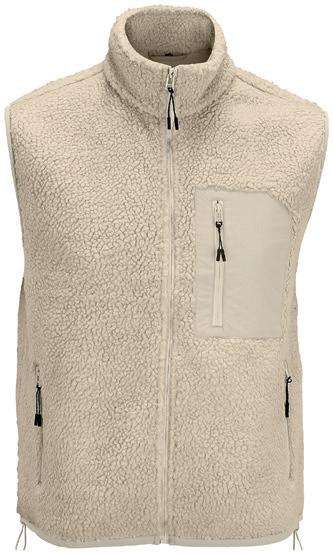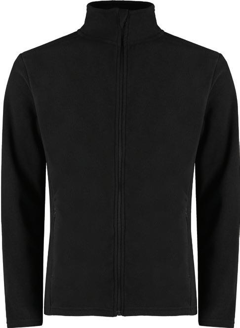 Anti-pill, dense compact pile fleece. Unlined. Panel design with cover stitching detail. Hemmed cuffs. Open hem style.