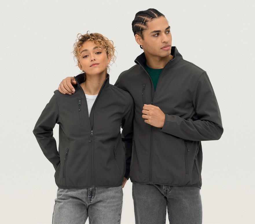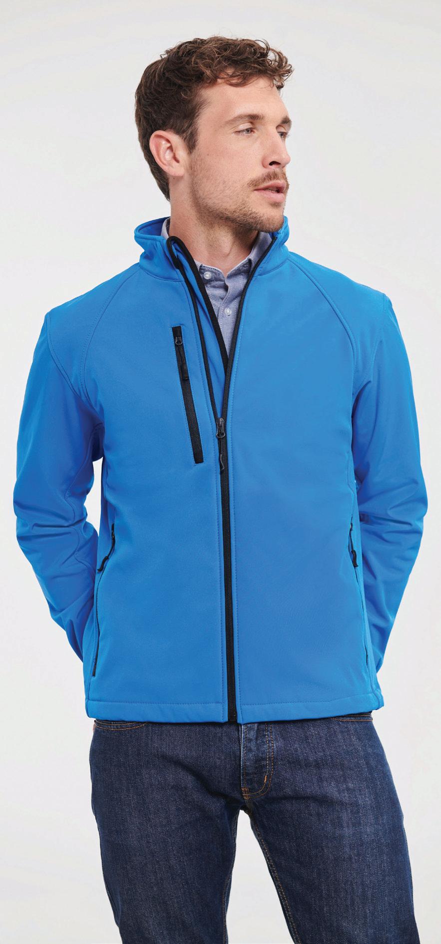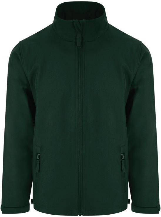 Three layer bonded soft shell. 93% polyester/7% elastane outer layer.