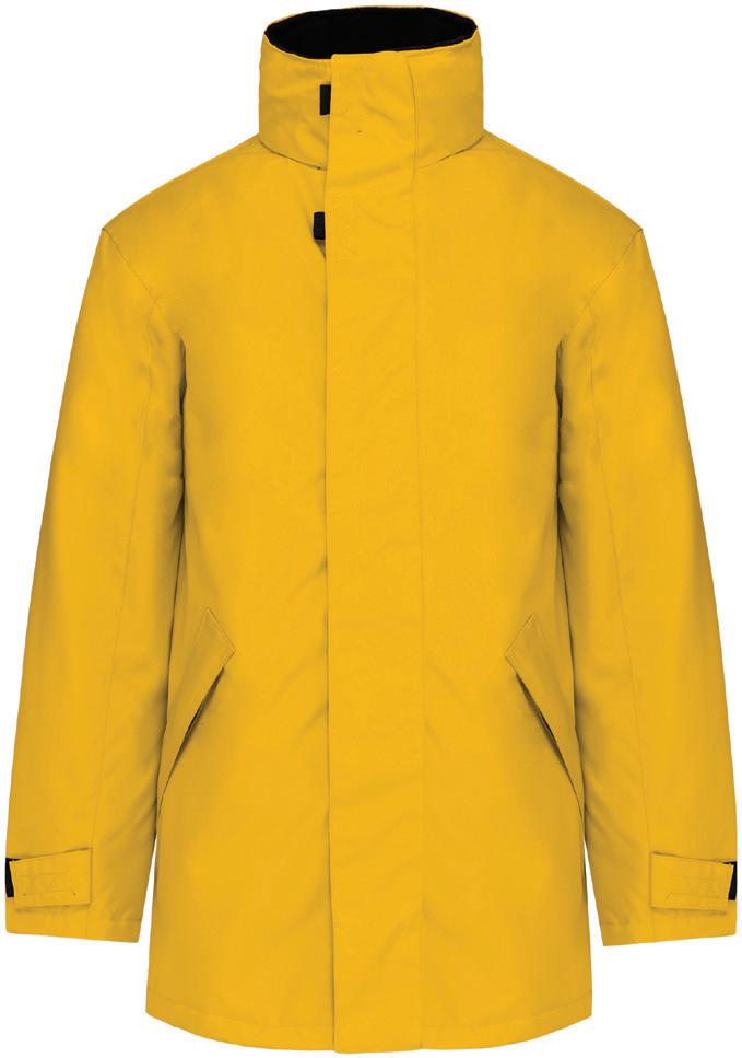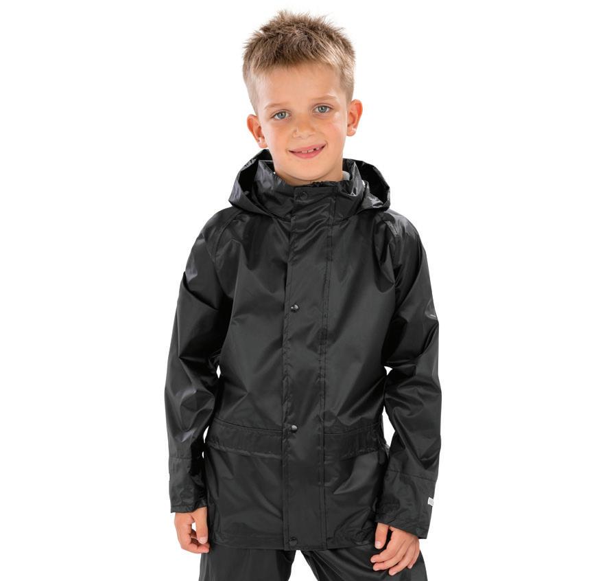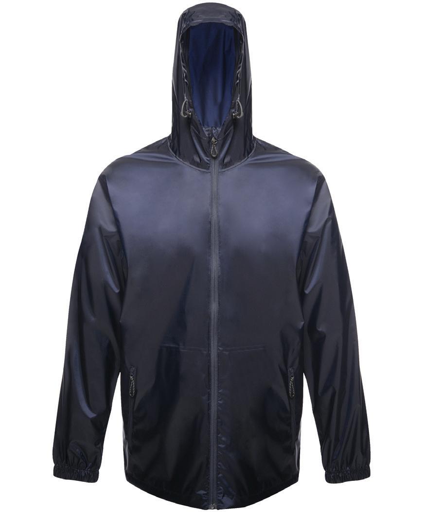 100% polyester pongee with StormDri 2000 PVC coating. Polyester quilted lining. Waterproof 2000mm with taped seams. Windproof. Concealed hood. Fleece inner collar. Elasticated cuffs and reflective tape cuff detail. Adjustable drawcord hem. Available in Adults RS207.