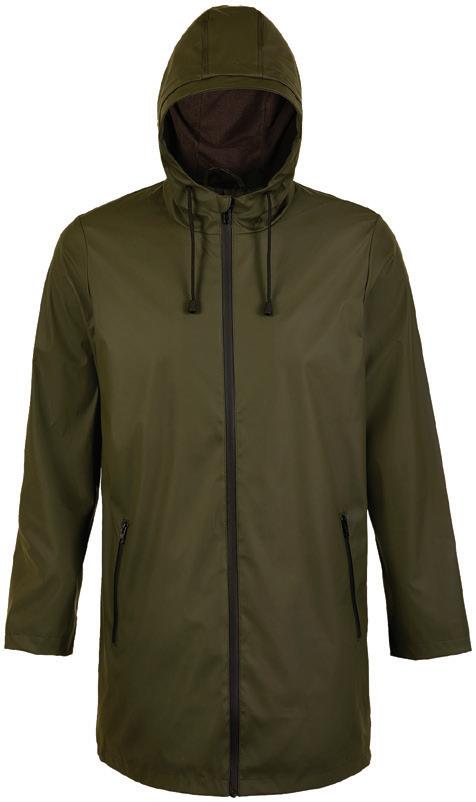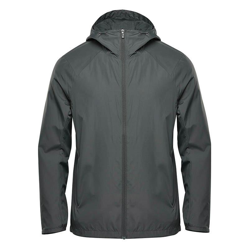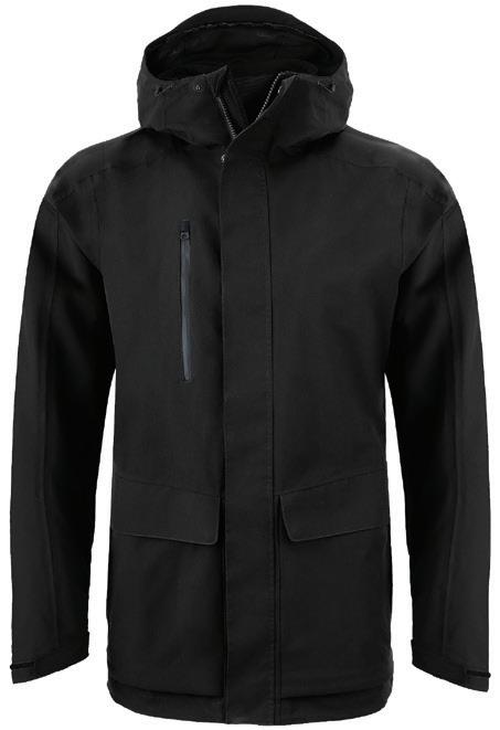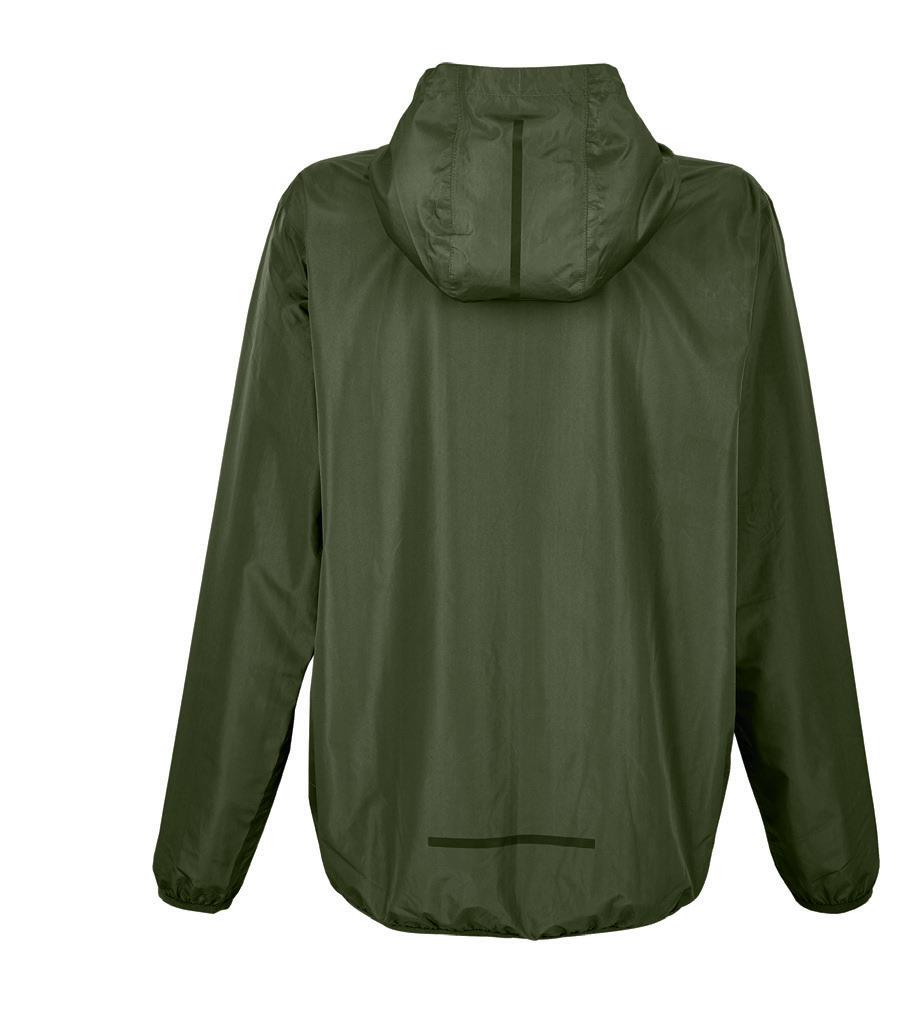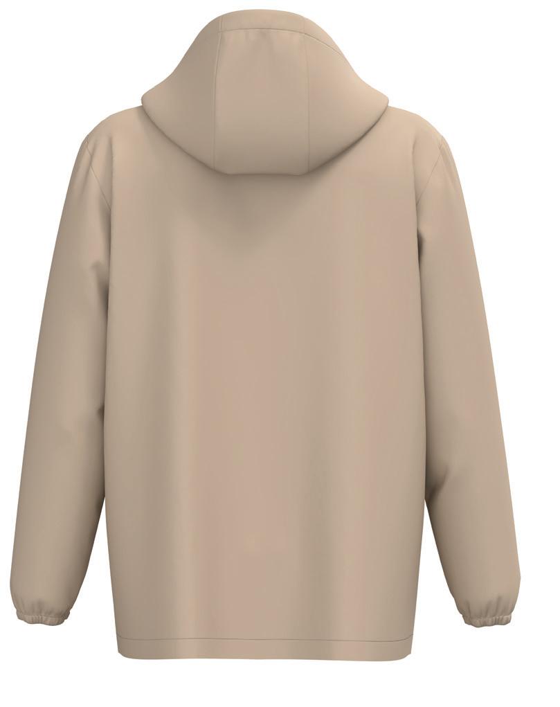 Nylon taslon with PU coating. Mesh lined body and polyester lined sleeves. Shower resistant with critically taped seams. Breathable. Soft touch inner collar. Concealed adjustable three panel hood. Drop hem with drawcord. Size: XS - 4XL.