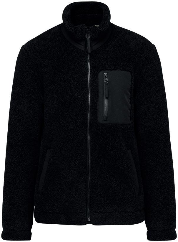 55% recycled polyester/45% polyester taffeta outer layer bonded with recycled polyester fleece.