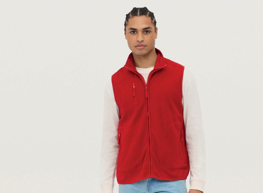 100% polyester 170 series anti-pill Symmetry® micro fleece. Made from at least 20% recycled polyester. Contrast stretch bound armholes and hem.