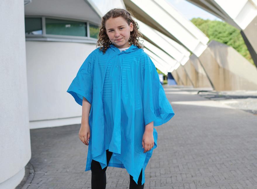 Waterproof and windproof. Popper neck closure. Can be opened up and laid flat to double as a groundsheet. Comes in a press fastened carry case with a drawstring handle. Carry case branded on one side - other side free for decoration.