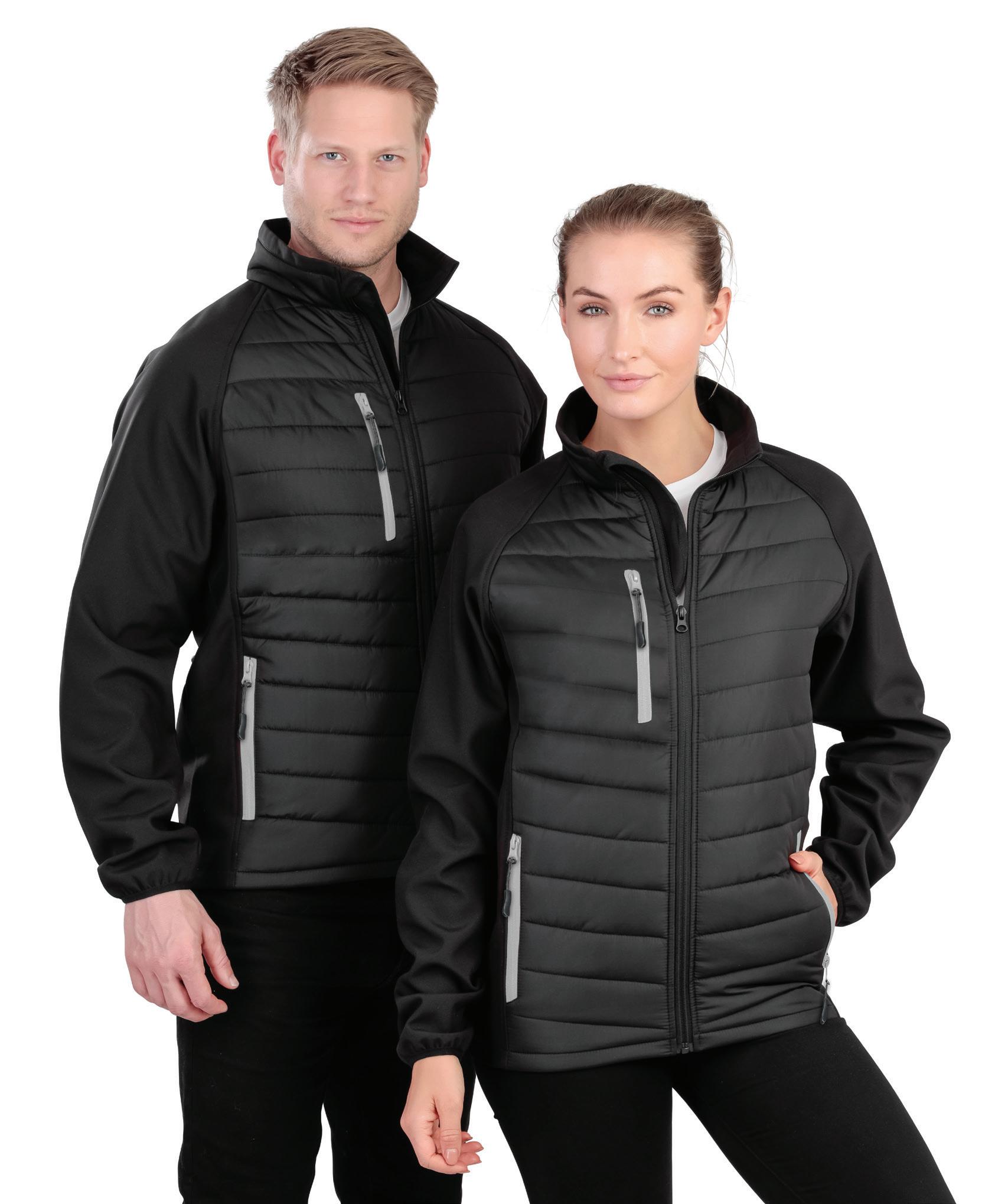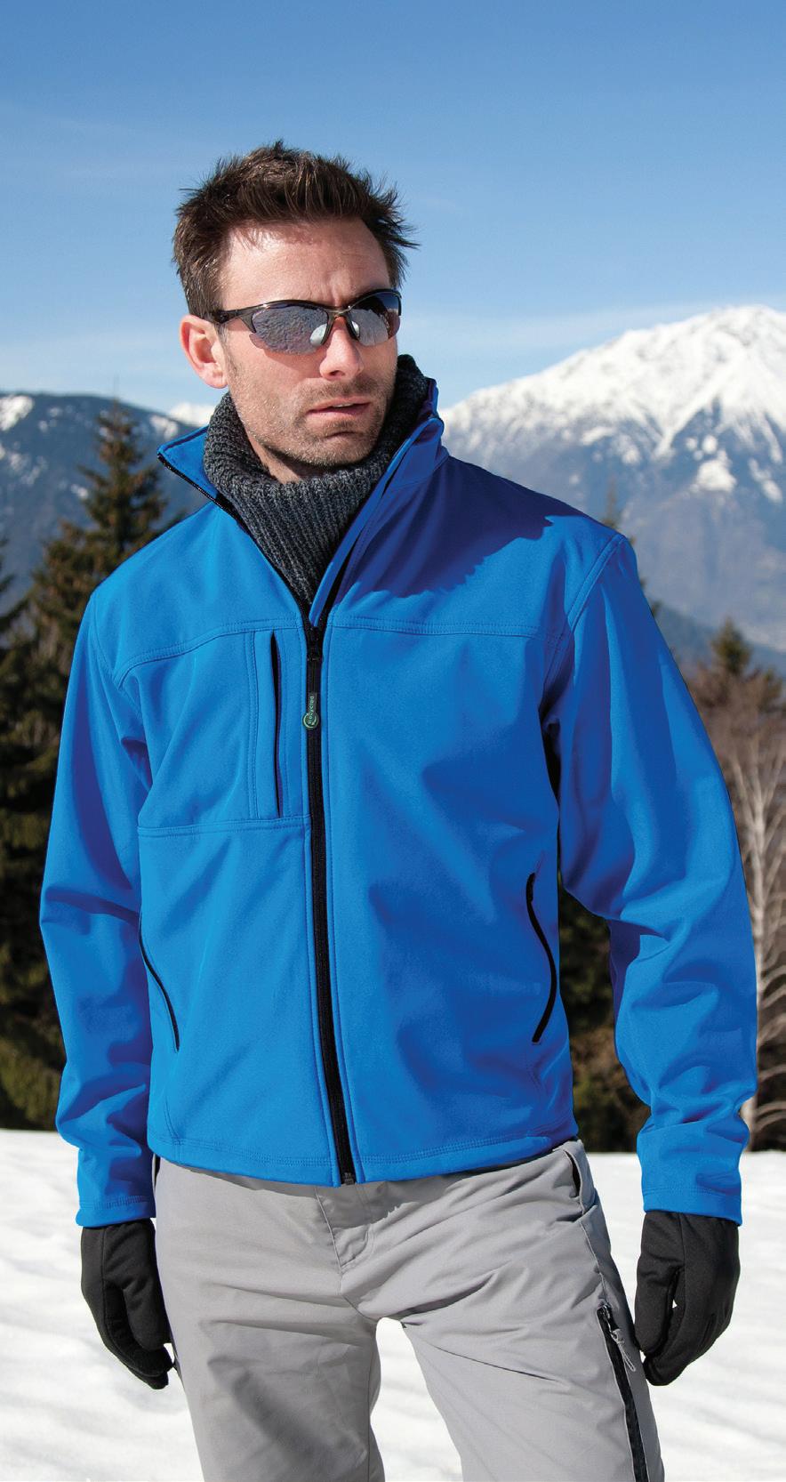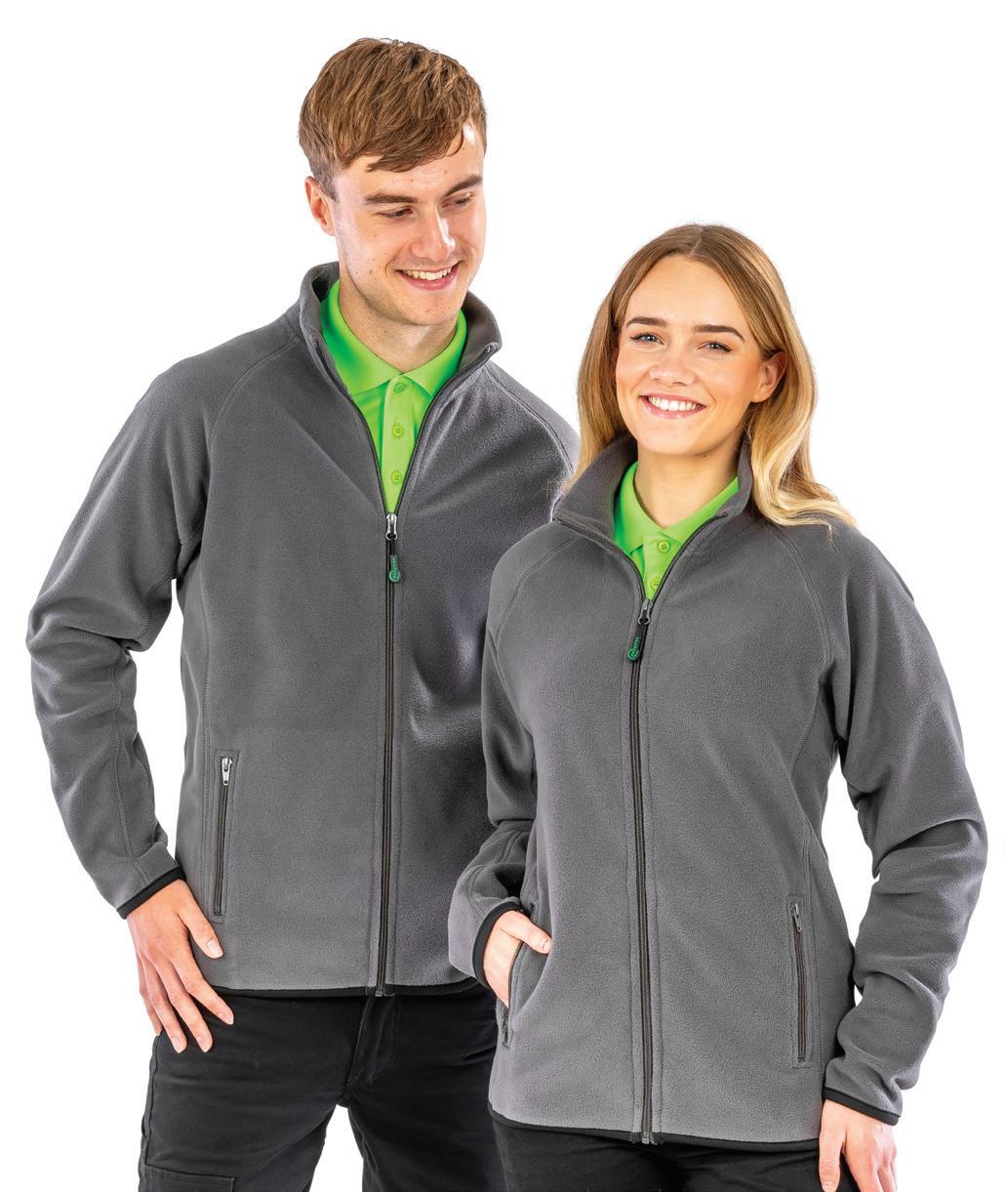 Warm backed polyester soft shell outer layer, made from at least 50% recycled polyester. Recycled fleece lining. Showerproof. Reflective detail on right sleeve, pockets and centre back hem. Open cuffs and hem. Available in Mens RG627 and Ladies RG628.