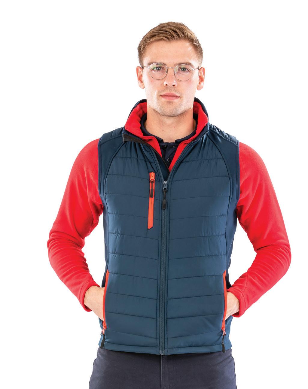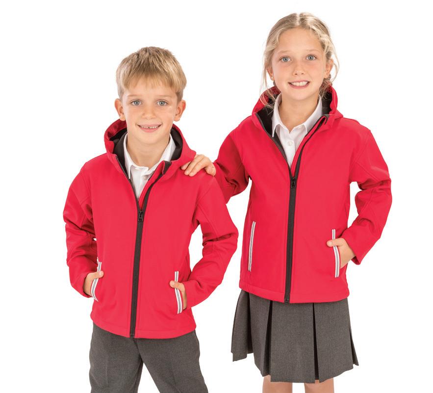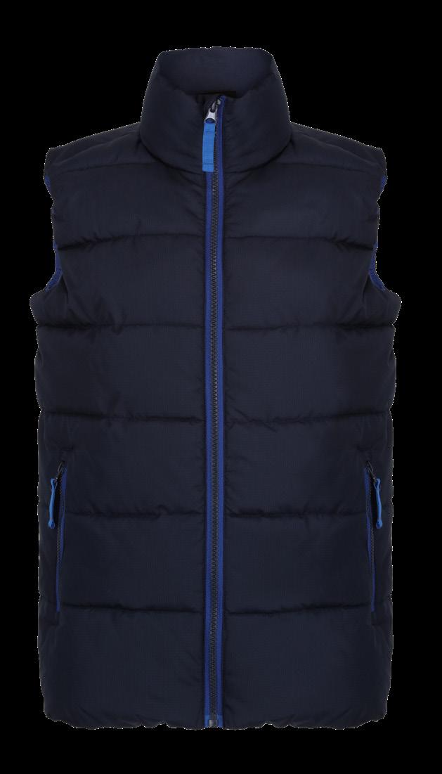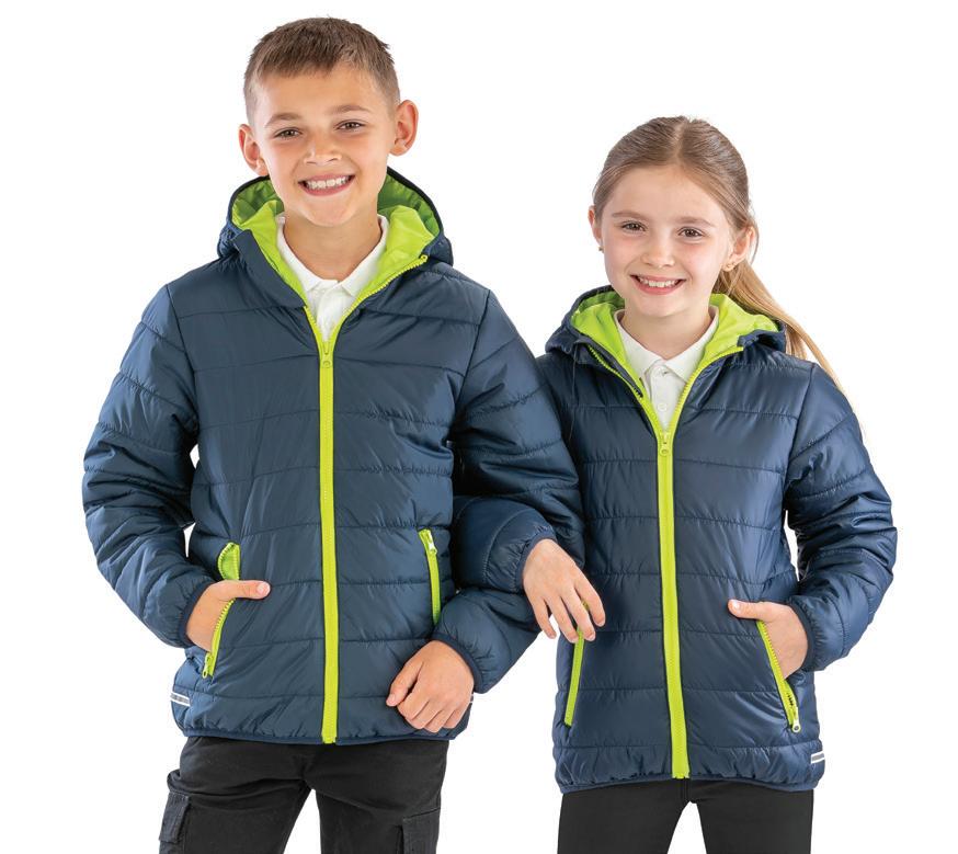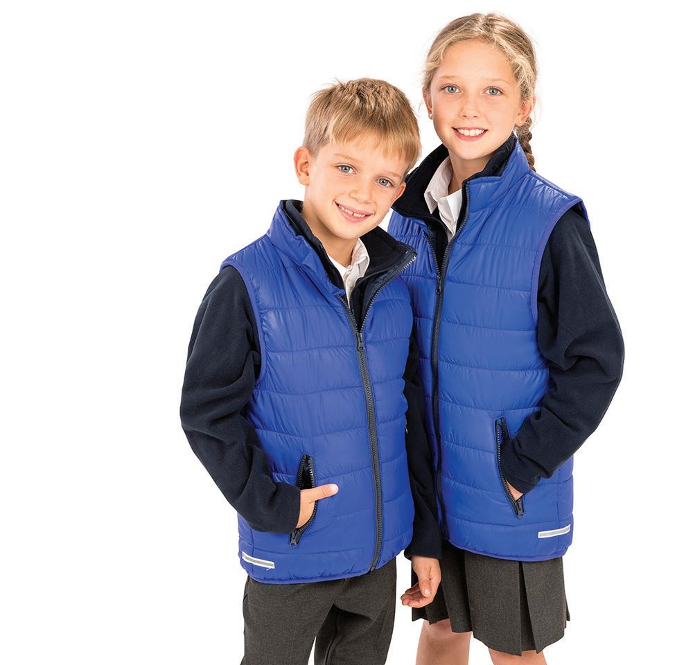 Polyester outer. Polyester padding and lining. Lightweight. Showerproof and windproof. Integral hood. Soft bound cuffs and hem. Reflective hip detail. Contrast lining and trim. Available in Adults RS233M. Age: 2 - 14.
