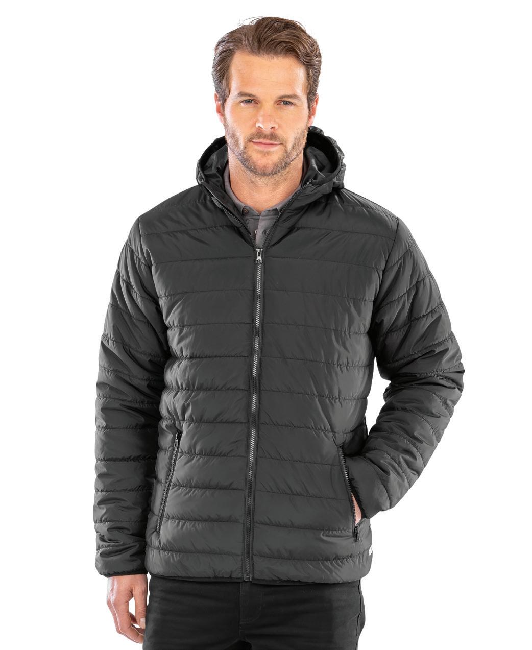 Outer material contains at least 30% recycled polyester (in transition). 210 series anti-pill Symmetry® fleece lined body, contains at least 30% recycled polyester. Polyamide lined sleeves. Recycled Thermo-Guard® insulation. Waterproof with taped seams. Windproof. Concealed peaked hood. Fleece lined collar. Inner pocket. Part elasticated adjustable cuffs. Elasticated side hem. Available in Adults RG045.