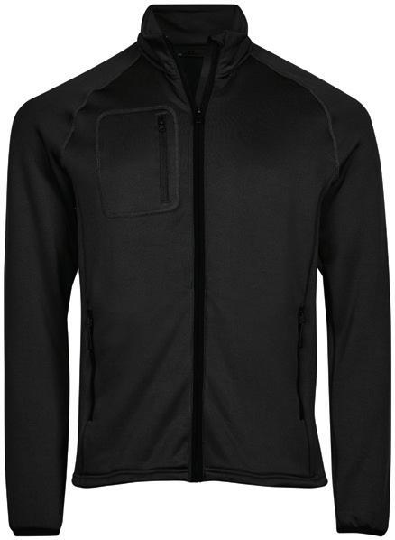 92% polyester/8% elastane woven outer. Performance membrane. Polyester micro fleece inner layer. Showerproof, windproof and breathable. Mesh lined front panels. Drawcord drop hem.