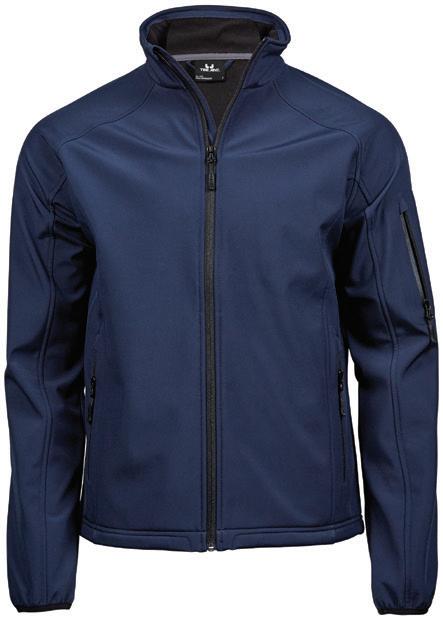 Woven stretch soft shell has a 96% polyester/4% elastane outer.
