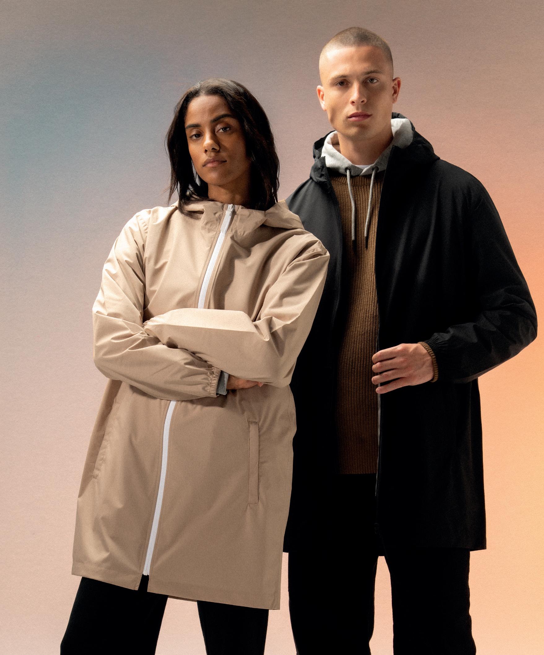 Hydrafort 5000 polyester outer. Waterproof with taped seams. Windproof. Integral hood. Elasticated cuffs. Reflective trim detail on back hem.