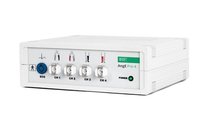 Az AngE Pro 4 a csatornák csökkentett számában és méretében különbözik a Pro 8-tól, és az érrendszer gyors és egyszerű szűrésére készült. A kompakt készülék az érrendszeri beavatkozások alatti és utáni sikeresség ellenőrzésére, valamint mobil környezetben hordozható eszközként is ideális.
