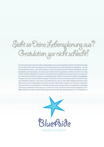 Sieht soDeine Lebensplanung aus? Gratulation, gar nicht schlecht! Wir alle suchen doch nach einer hohen Lebensqualität. Eine Art des persönlichen Glücks. Doch die Suche fängt wie so vieles, mit der Suche am falschen Ort an. Dabei machen es uns die hunderten von Ratgebern – alle mit der scheinbaren Lösung – auch nicht einfacher. Es ist darum höchste Zeit für einfachste Werkzeuge, um Ziele festzuhalten und einzuordnen, um daraus einen Lebensentwurf zu gestalten, welcher sich nicht nur richtig anfühlt, sondern realisierbar ist. Gerade, weil das Leben keine Gerade ist und niemand weiss, was morgen ist. Es ist mehr als sinnvoll, alles zu planen, was sich planen lässt. Sportler wissen das und erstellen Trainingspläne. Manager wissen das und entwickeln Strategien. Architekten wissen das und bauen Häuser mit Plänen. Sogar zum Einkaufen machen wir uns Listen, weil jedem klar ist, dass wir sonst alles einkaufen und doch nichts haben. Der Sinn einer Einkaufsliste ist schnell verstanden. Pläne helfen. Sie geben uns Freiheiten und bereiten Szenarien für das Unvorhersehbare vor. Trotzdem sind Menschen meistens ohne einen geordneten Lebensplan unterwegs. Ein definierter Plan B oder gar C existiert erst recht viel seltener. Warum ist das eigentlich nur so? Selbstcoaching wäre doch so einfach! Darum, jetzt mehr lesen über BlueAide Empowerment: www.blueaide.com