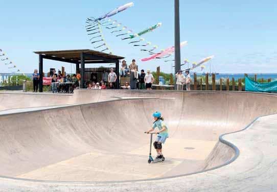 Surrounded by an expansive grassed area and situated right on the town waterfront recreational areas, the skate park is utilised by all generations with the design incorporating a number of different