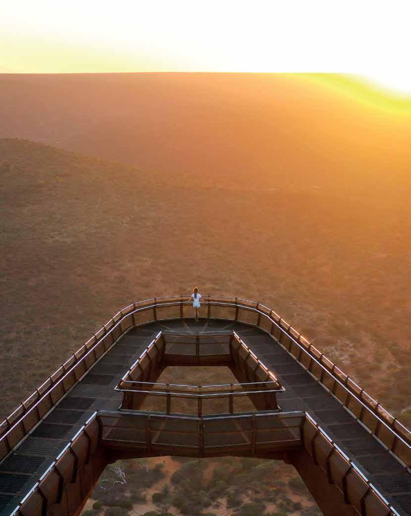 This new, world class attraction, with platforms suspended 100 metres above the gorges, promises views across Kalbarri National Park that will take your breath away. A magical experience.