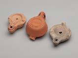 Algunes de les peces que formen part de l’exposició (d’esquerra a dreta): conjunt de llànties trobades a Granollers, cap de Bacus jove i àmfores vinàries