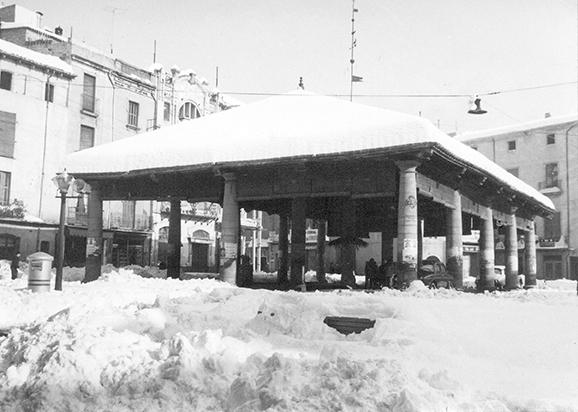 Vista de la plaça de la Porxada en la nevada del Nadal de 1962