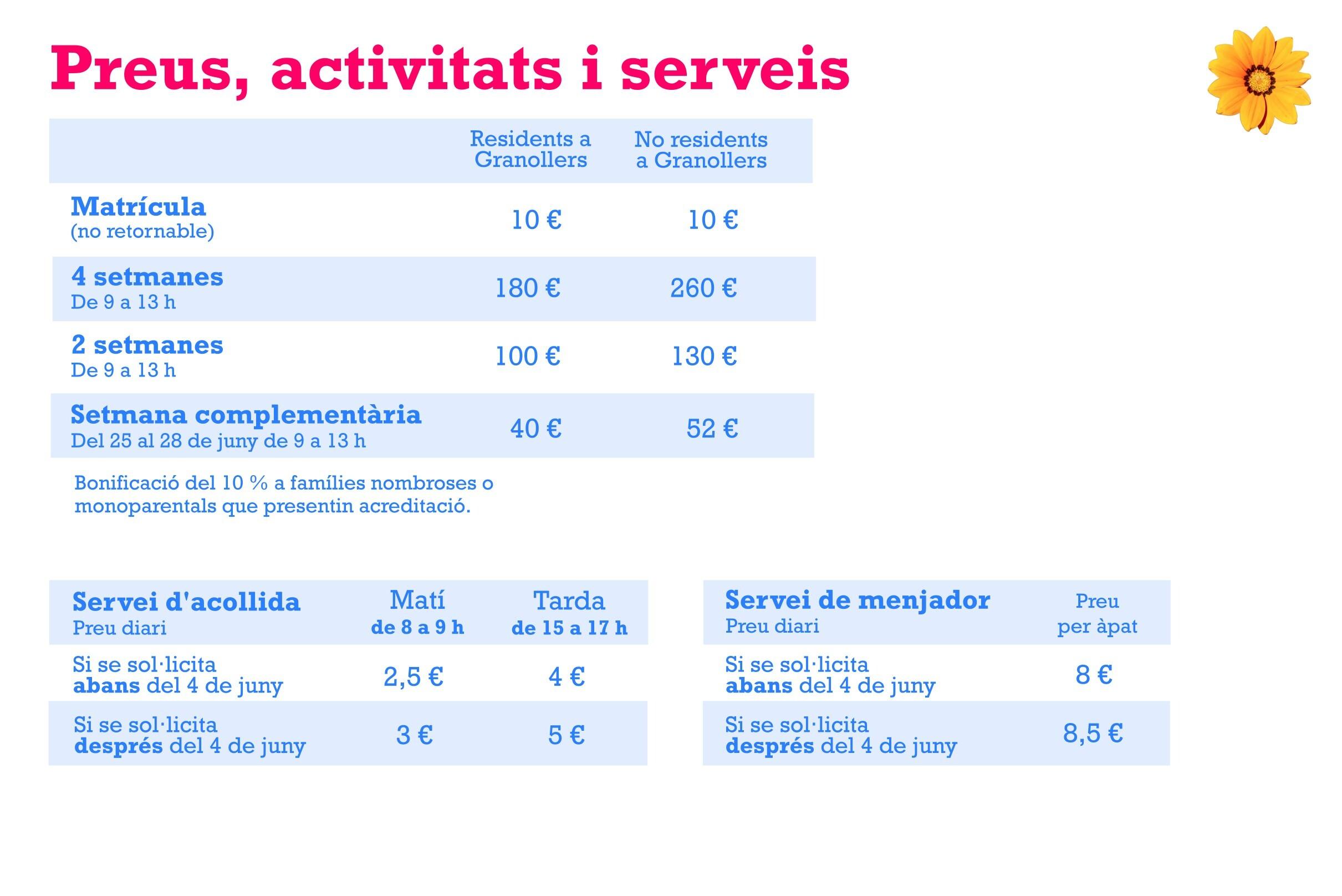 El procés de preinscripció i matriculació es fara en línia a través d'un formulari que trobareu a: