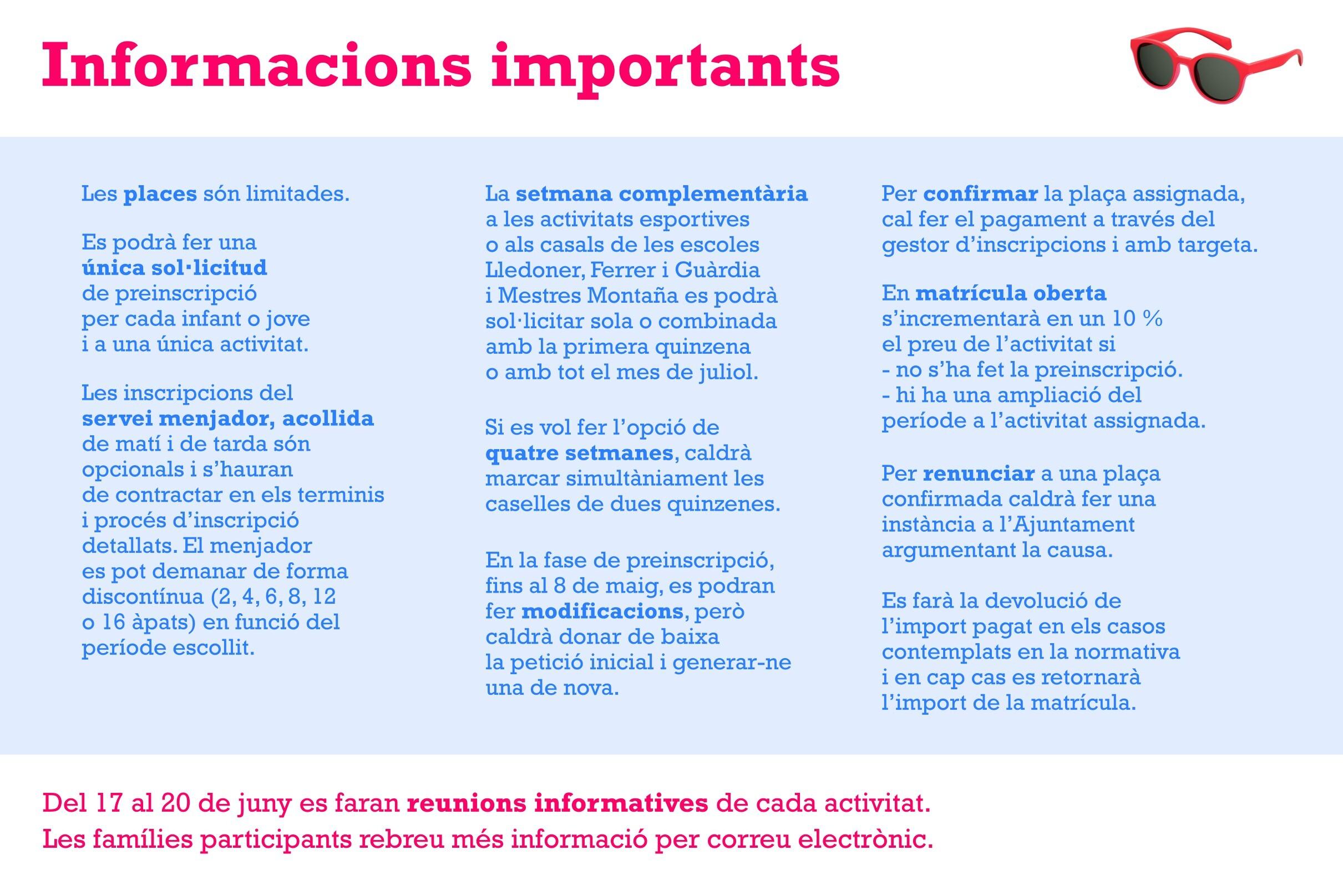 Les places vacants que quedin es publicaran aquest dia i es podra fer la matrícula en línia a partir de les 12 h i fins al 29 de maig a les 23.59 h o fins que s'esgotin les places.