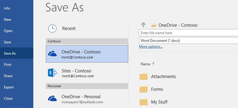 Try it: Select File > Save As, and then select OneDrive and give this document a name.