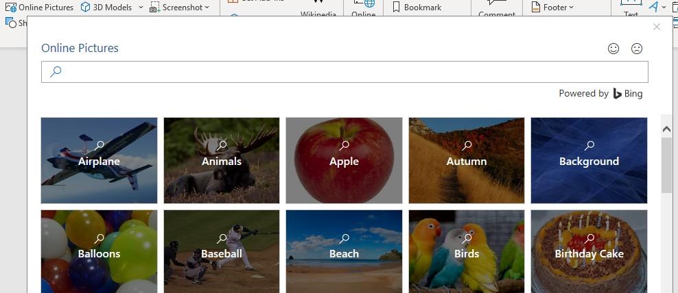 Word works with Bing to give you access to thousands of pictures you can use in your documents.
