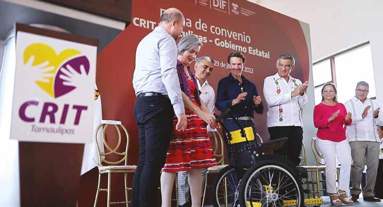 En el marco de las actividades que se realizaron en las instalaciones del Centro de Rehabilitación e Inclusión Infantil Teletón (CRIT) ubicado en el municipio de Altamira, el Sistema DIF Tamaulipas que preside la doctora María Santiago de Villarreal, recibió un donativo de 20 sillas de ruedas.