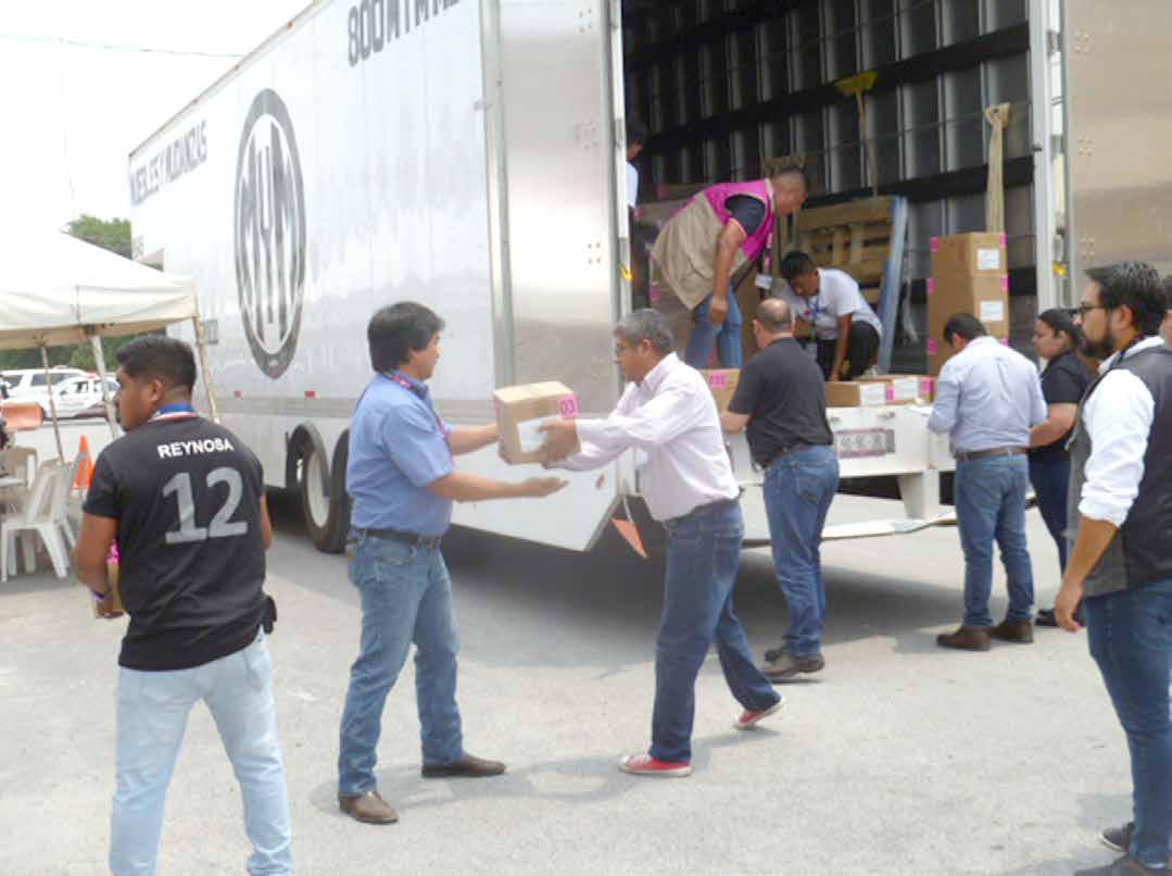 este viernes 10 de mayo, la Junta distrital ejecutiva 07 del INe, con cabecera en Reynosa, Tamaulipas recibió los paquetes que contenían 957mil 642 boletas electorales, así como documentación electoral con emblemas del Proceso electoral Federal 2023-2024 que serán utilizadas en las elecciones del próximo 2 de junio.