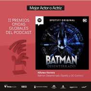 La entrega de premios se llevó a cabo en España, donde el mexicano se llevó el galardón de la categoría Mejor Actor en Ficción Sonora, por interpretar a Batman en el proyecto sonoro de Spotify, Warner Bros. y DC Cómics.