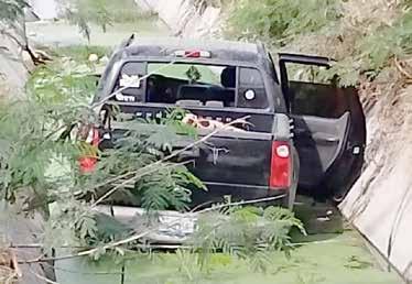 la camionEta quedó dentro del canal.