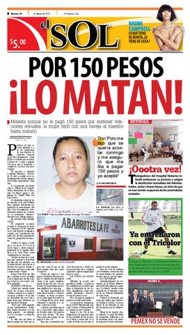 rofesor de una escuela primaria y a la vez propietario de una negocio de abarrotes ubicado en la Fraccionamiento Cima III fue asesinado por su amante luego de se negó a pagarle 150 pesos que le prometió a cambio de sostener relaciones sexuales. El maestro se llamaba Leopoldo Martínez Rosales de 52 años y residía en la calle Mariano Escobedo, número 100 del fraccionamiento Cima Tres. La responsable del homicidio es Maria de los Angeles Valdez Hernández de 26 años, alias "La Mary", quien es originaria de Ciudad Valle San Luis Potosí. Su domicilio actual lo tiene ubicado en la calle Porfirio Díaz, número 104 del fraccionamiento ya mencionada, ella dijo estar desempleada, anteriormente trabaja de cocinera en el restaurante "Encinos" ubicado en la colonia Alianza. El LUGAR DEL HOMICIDIO El sangriento asesinato ocurrió en el negocio de nombre "Abarrotes La Fé" ubicado en la calle Francisco Márquez esquina con Constitución, número 101 del fraccionamiento Cima III, propiedad del maestro. Confesó la mujer asesina que a eso de las 10 ó 11 de la noche llegó a dicho negocio propiedad de Leopoldo Martinez o de "Don Polo" como comúnmente lo conocían. "Llegué al negocio a comprar una caguama y Don Polo me dijo que me quedara con él, luego me fue con el hacia el interior del negocio donde se encuentra una mesa y una silla y empezamos a tomar. Luego Don Polo me dijo que se quería acostar con migo y me aseguró que me iba a pagar 150 pesos y yo acepté" contó la homicida. SE BURLO DE ELLA Señaló que cuando terminaron de sostener relaciones sexuales, el profesor se empezó carcajear y burlase de la mujer, diciéndole que no le iba a pagar nada, que solamente era una broma lo del pago. "Pensé que estaba jugando ya que anteriormente habíamos tenido relaciones y si me había pagado, sin embargo en ésta ocasiones se rehusaba a pagarle. Le dije que me diera el dinero porque me tenía que ir,