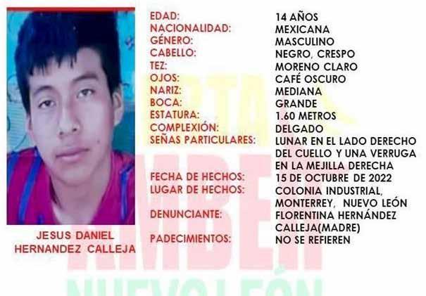 el menor salió de su domicilio en el estado de tamaulipas, llegando a la central de Autobuses de Monterrey, sin que hasta el momento se sepa de su pa radero.