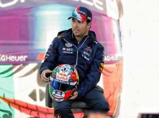 Checo Pérez lleva ta tuada la bandera tricolor en su corazón y en el cas co que utilizará el fin de semana durante el Gran Premio de la Ciudad de México.