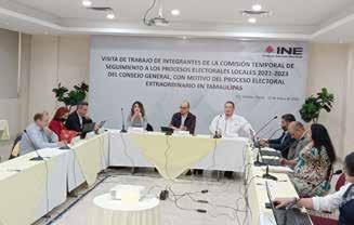 Integrantes de la Comisión temporal de seguimiento a procesos electorales del Consejo General, sostuvieron una reunión de trabajo con Vocales de la Junta local del INe tamaulipas. participaron en la reunión el Consejero Martín Faz; la Consejera Dania ravel, así como el Mtro. sergio Bernal,