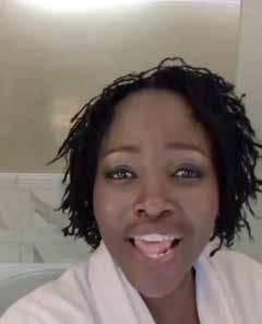 En la grabación, la actriz de Pantera Negra mostró un buen ánimo mientras posaba despeinada y cubierta con una toalla.