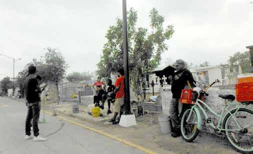 En ocasiones acuden al Viejo Panteón Municipal, con su herramienta de tra bajo con la esperanza de que, algunos visitantes les contraten para hacer labo res de limpieza.