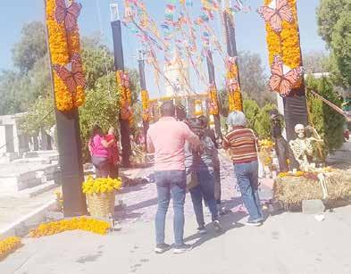 El panteón municipal se convirtió en un lugar de encuentro y celebración, con un ambiente festivo y lleno de color. Las catrinas y los altares adornaron el lugar, creando un ambiente de respeto y alegría por la tradición.