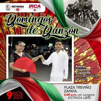 Más tarde, a las 6:00 P. M., en la plaza Treviño Zapata de la colonia Longoria, se celebrará el tradicional Domingo de Danzón, con la participación de los Maestros Josué Carlos Rodríguez