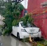 Otro accidente se registró en la colonia Fraccionamiento San Valentín, donde una unidad terminara proyectada sobra un árbol dejando cuantiosos daños materiales, y obstrucción vehicular.