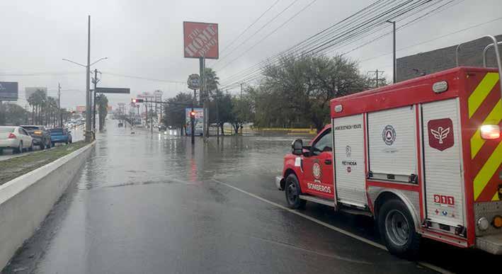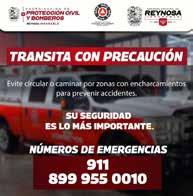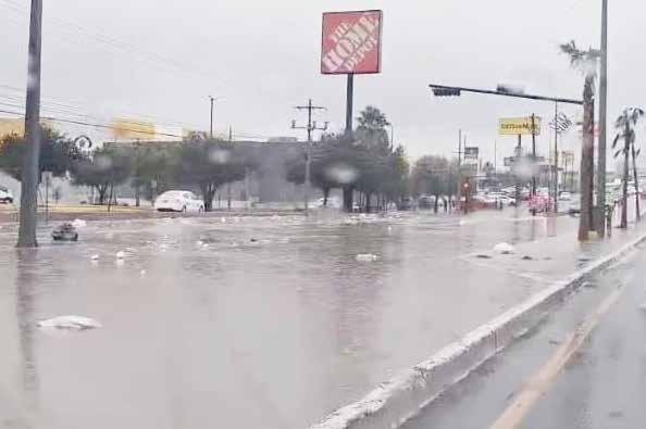 La Coordinación de Protección Civil y Bomberos de Reynosa alerta a peatones y conductores debido a la acumulación de agua en zonas bajas de la ciudad, provocada por las lluvias que el Frente Frío Número 21 trajo a la región.