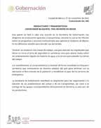 El Gabinete de Seguridad informa los eventos relevantes del miércoles 26 de noviembre de 2025, como parte de la Estrategia Nacional de Seguridad, que contempla cuatro ejes de acción: Atención a las causas; Consolidación de la Guardia Nacional; Fortalecimiento de la inteligencia e investigación, y Coordinación con las entidades federativas.