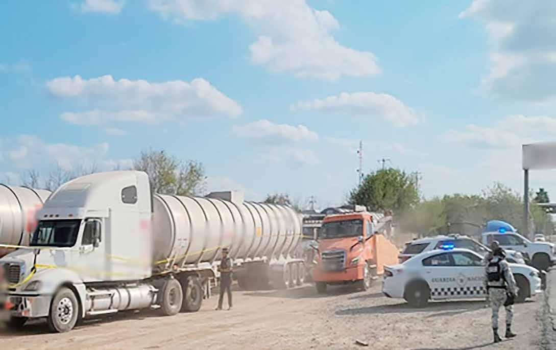 nal de la Aduana de Matamoros, donde confiscaron nueve tractocamiones y nueve tanques cisterna, cada uno con capacidad de 55 mil litros, que contenían hidrocarburo presuntamente de proceden-