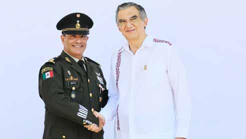 El gobernador Américo Villarreal Anaya asistió como invitado de honor a la toma de posesión al cargo y protesta de bandera del general brigadier de Estado Mayor, Newton Manuel Chávez Baños, como comandante interino de la 48 Zona Militar.