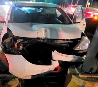 contra la base de un poste, se estrelló el automóvil.
