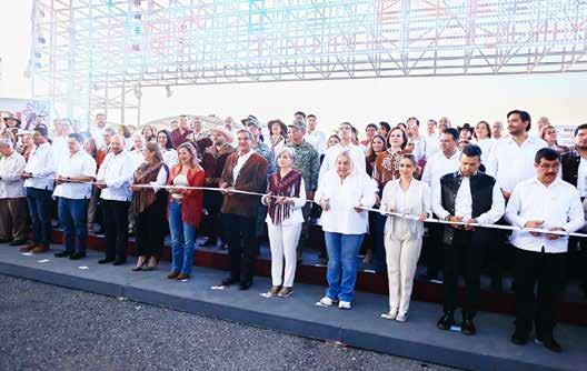 En el pórtico principal del recinto ferial y acompañado por legisladores, presidentes y presidentas municipales, mandos de las fuerzas armadas y dirigentes empresariales, el go-