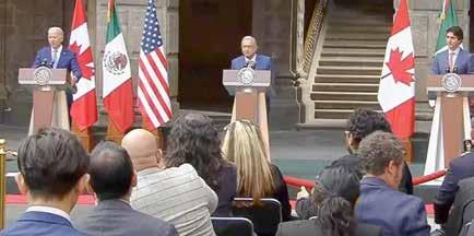 construido ni un metro de muro' Celebran reunión trilateral en Palacio Nacional - Al cierre de Cumbre, AMLO agradece a su homólogo de EU, Joe Biden, que en su Gobierno "no ha construido ni un metro de muro" en frontera