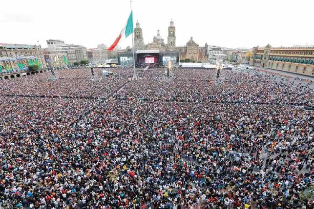 Miles de personas esperaron pacientes a que el Grupo Firme se presentara en el escenario montado en la plancha del Zócalo de la CDMX. REFORMA.