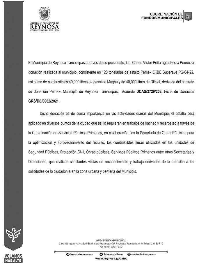 Vida / 4F RIHANNA Broncos se imponen a 49s en casa 1/2 Tiempo Confirmada para el medio tiempo del super bowl 2023 Urgen a atender su salud Encuentran a 108 migrantes en caja de tráiler Maratón Fotográfico 2022 del DIF-Reynosa INVITA CARLOS PEÑA ORTIZ A PARTICIPAR EN ¡Ahí viene el frío! Registra México primer frente Cae dueño de la mina 'El Pinabete' en Coahuila Pág. 2B Magistrado ponente proyecta validar triunfo de AVA "Cercano, humano y de respuesta ante el compromiso transformador" Pág. 2A Pág. 2A Pág. 2A Solo falta que sea puesto a consideración del Pleno de la Sala Su perior del TEPJF, lo que podría ocurrir este miércoles para conocer el fallo definitivo de la máxima autoridad electo ral del país. Humberto Villarreal Santiago agradece el apoyo ciu dadano a su Padre, Doctor Américo Villarreal Anaya, y señala que ese apoyo reafirma el compromiso por y con la Transfor mación. Pág. 5A RESOLUCIÓN JRC-101/2022 Pág. 5A