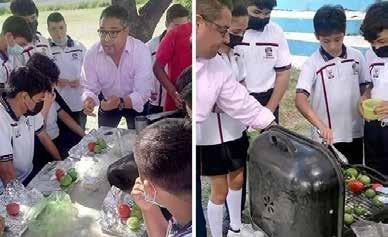 En otra de las imágenes se ve al profesor Carlos, como ha sido identificado el maestro por ex alumnos, dando instruc ciones a los pequeños parrilleros.