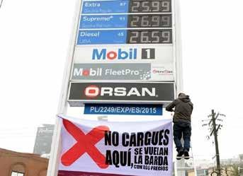 precios”, dice la lona que además tiene el logotipo de la Secretaría de Economía y Profeco. El titular de la Profeco dijo que en la gasolinera Mobil se está vendiendo la gasolina extra en 25.99 pero el día de ayer se vendió en 26.30, es decir, entre dos o tres pesos más arriba de lo que solicitó mantenerla el Gobierno federal. “Los precios altos no son justificables en ningún caso, en cuánto están comprando las gasolineras a Pemex sigue estando al mismo precio y lo que está variando es el margen de ganancia”, dijo Escalante, “la mayoría de las gasolineras por las que pase tienen la gasolina en menos de 24 pesos que ese es el rango que la Presidenta (Claudia Sheinbaum) determinó entre 23 y 24 pesos”.
