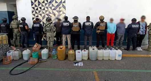 De Pemex Logística, se especificó, participaron 45 elementos en el aseguramiento en un primer momento de 4 hombres con 12 bidones que contenían un aproximado de 310 litros de diésel, además de dos armas de fuego y droga. En un segundo punto intervenido se detuvo a 3 hombres y a una mujer con 9 bidones (aproximadamente 130 litros de gasolina) y, por último, 6 personas fueron detenidas con 180 litros de gasolina, un arma y 45 envoltorios de droga. Los detenidos fueron